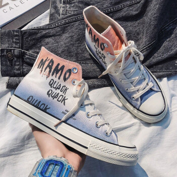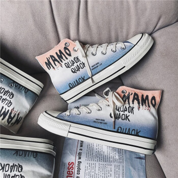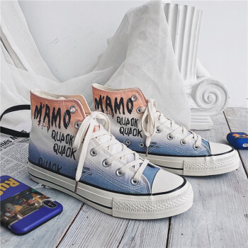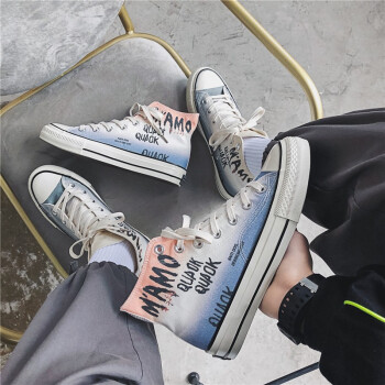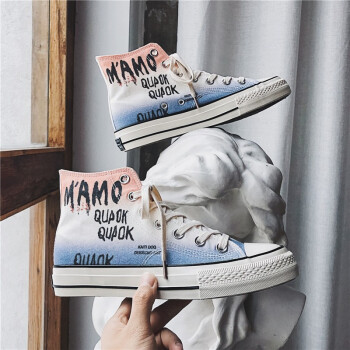 谜邦 帆布鞋男高帮夏季新品男士休闲鞋子男韩版潮流学生青年百搭板鞋男户外运动透气慢跑步男鞋T020 粉蓝渐变 41 |