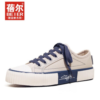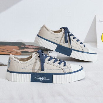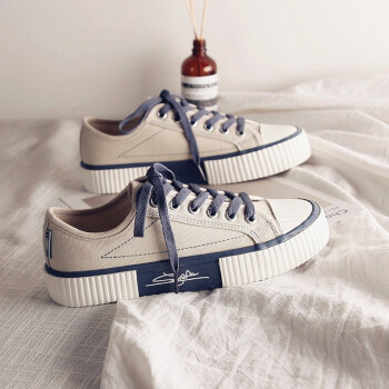 蓓尔帆布鞋女饼干鞋韩版系带低帮学生球鞋复古休闲鞋女原宿板鞋潮 米色 38 |