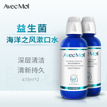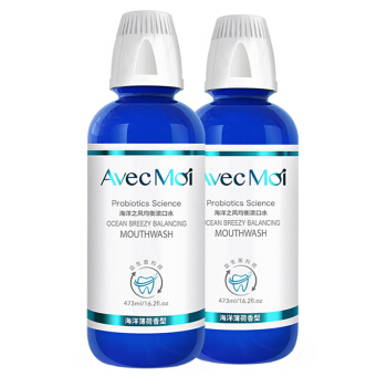 AvecMoi 漱口水 海洋之风益生菌 便携无酒精 473ml*2瓶套装(清新口气 口腔清洁) |