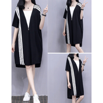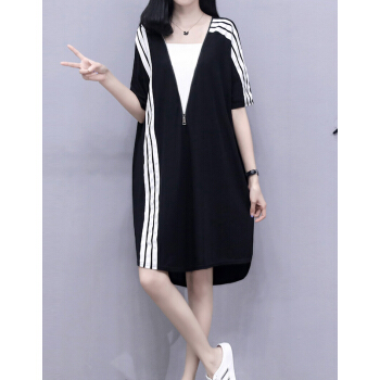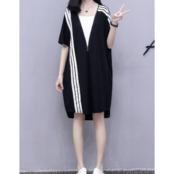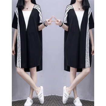婪澈连衣裙女2020夏装新款大码女装拉链宽松显瘦运动休闲卫衣裙T恤裙 图片色 请拍正确尺码 |
