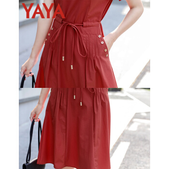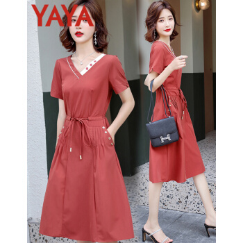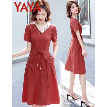 鸭鸭服饰(yaya)连衣裙女2020女装夏季新款女装显瘦减龄收腰A字裙复古休闲气质裙子女 红色 请选择正确尺码 |