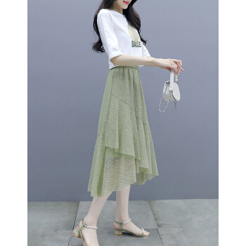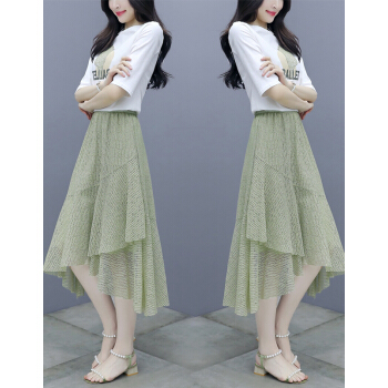 莱倪晟纳短袖连衣裙女装2020夏装新款韩版宽松显瘦气质女神范两件套装中长裙子 绿色 请拍正确尺码 |