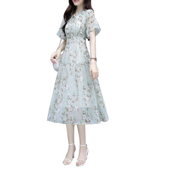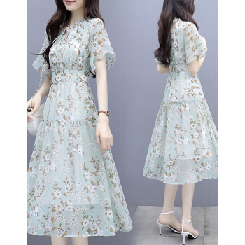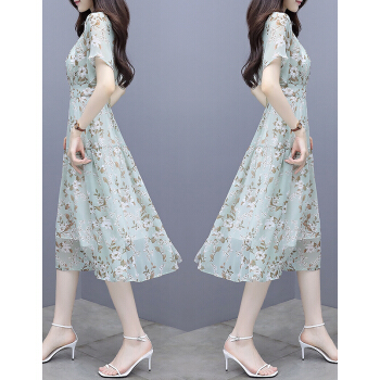 茵艾曼连衣裙女大码装2020夏季新款女装时尚减龄气质显瘦遮肚子胖mm长裙子 A1352浅绿 L《108-118斤》 |