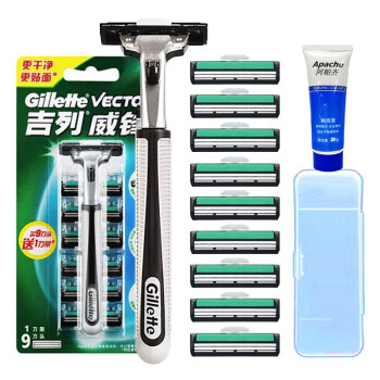 吉列(Gillette)威锋双层刀片手动剃须刀刮胡刀手动吉利老式剃须刀(9刀头+1刀架)收纳盒+须膏 |