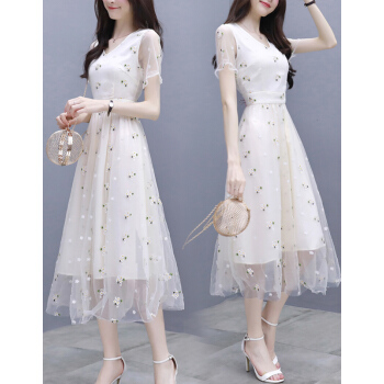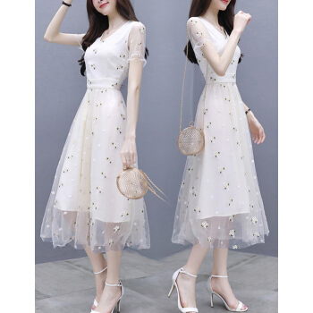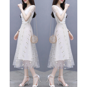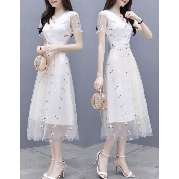 婪澈纯色连衣裙女2020女装夏季新款收腰显瘦气质流行A字裙女神范小个子裙子 图片色 请拍正确尺码 |