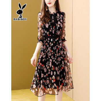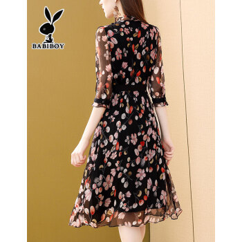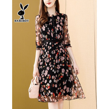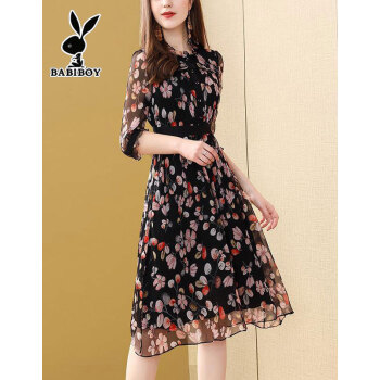 BABIBOY 连衣裙女2020夏季新款女装高腰中长款韩版时尚气质百搭收腰显瘦洋气裙子 图片色 M |