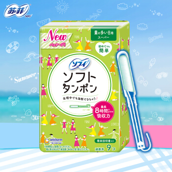 苏菲Sofy 日本进口导管式轻柔内置入棉棒无感卫生棉条游泳运动 9支装(较多吸收量非卫生巾) |
