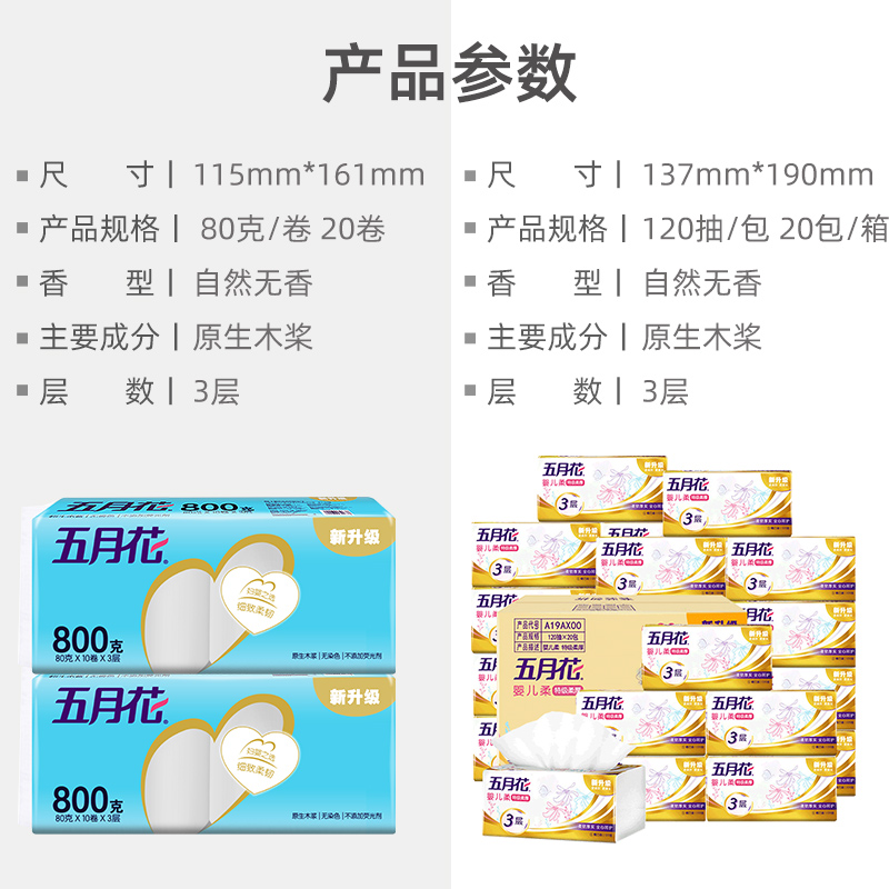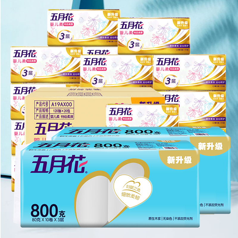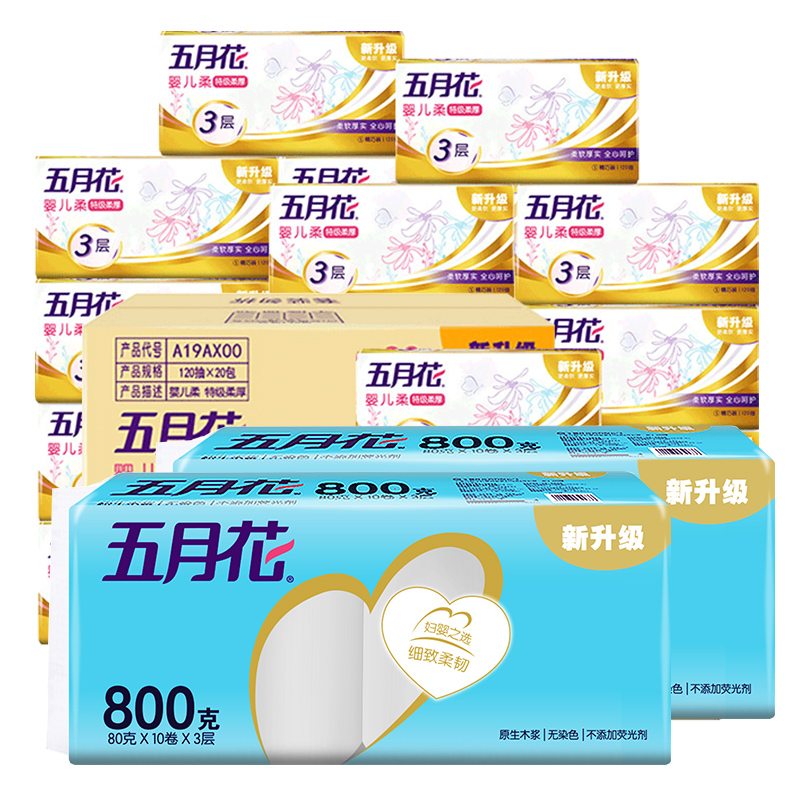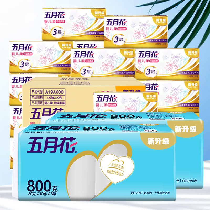 五月花金装抽纸3层120抽20包+卷纸80g20卷(分两个包裹发货) |