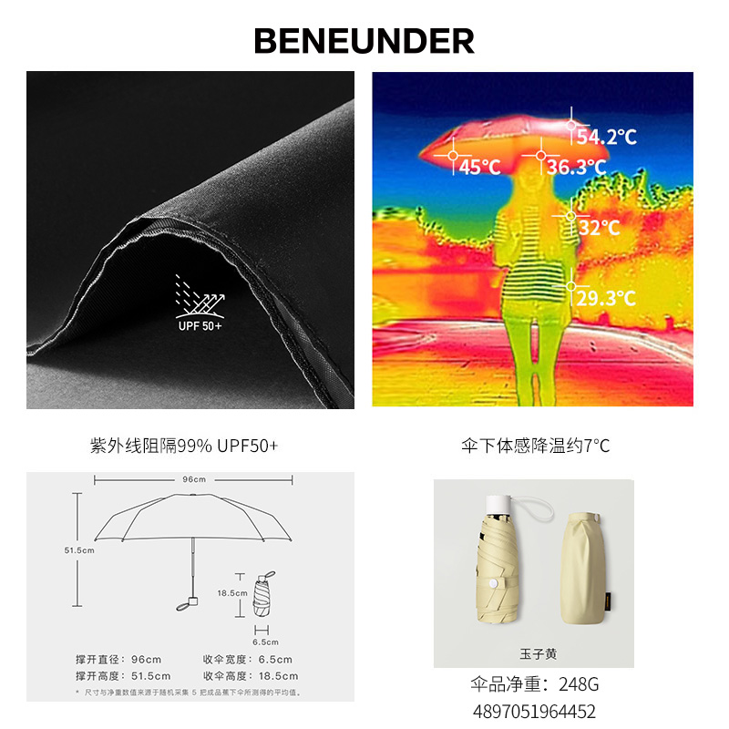 BANANAUNDER蕉下 纸意太阳伞 小巧便携折叠两用晴雨伞遮阳防晒防 彩胶【聚酯纤维/玉子黄】 |