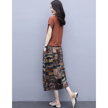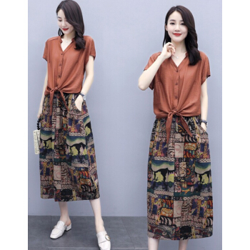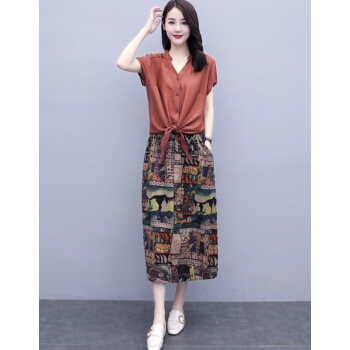 苏洛琳雪纺连衣裙女2020夏季新款大码女装时尚气质女士棉麻中长印小个子碎花连衣裙蕾丝两件套装裙子女 图片色 M |