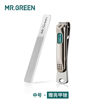 德国MR.GREEN指甲刀单个指甲剪大号进口不锈钢斜口指甲钳家用便携小号子套装原装甲沟炎灰厚嵌 中号(限时赠指甲锉) |