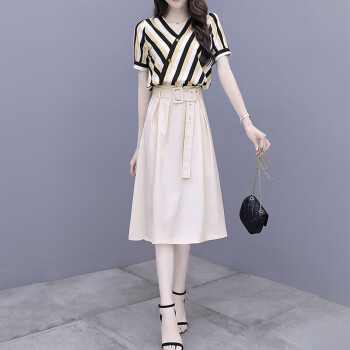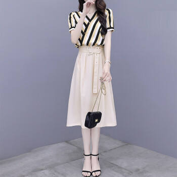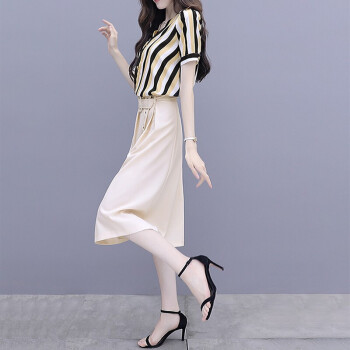 莱倪晟纳短袖雪纺连衣裙女装新品2020年夏季新款韩版中长款印花宽松显瘦时尚性感减龄两件套装沙滩裙子 上衣+裙子 请拍正确尺码 |