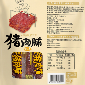 自然派 蜜汁味猪肉脯 猪肉干肉脯 独立包装即食特产小吃休闲零食100g |