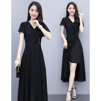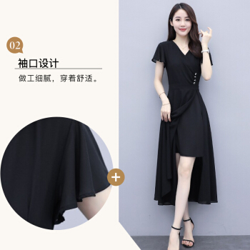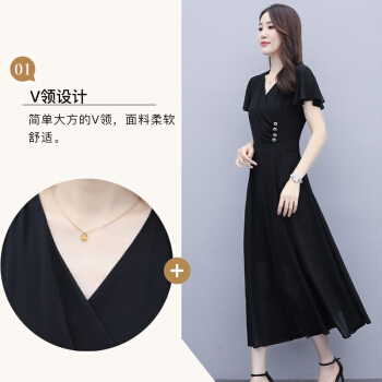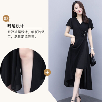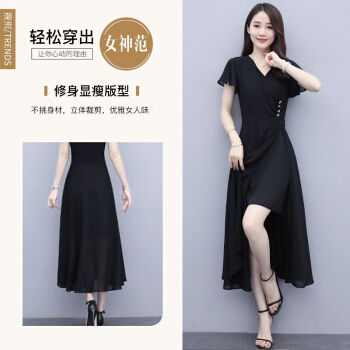 佬唐森雪纺连衣裙女2020夏季新款轻熟风显瘦长裙遮肚气质女神范仙女裙子 黑色 请拍正确尺码 |