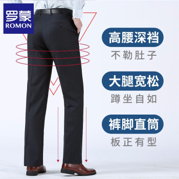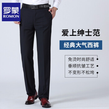 罗蒙(ROMON)西裤男 2020新款男士商务休闲修身正装抗皱免烫直筒裤子 藏青色 33 |