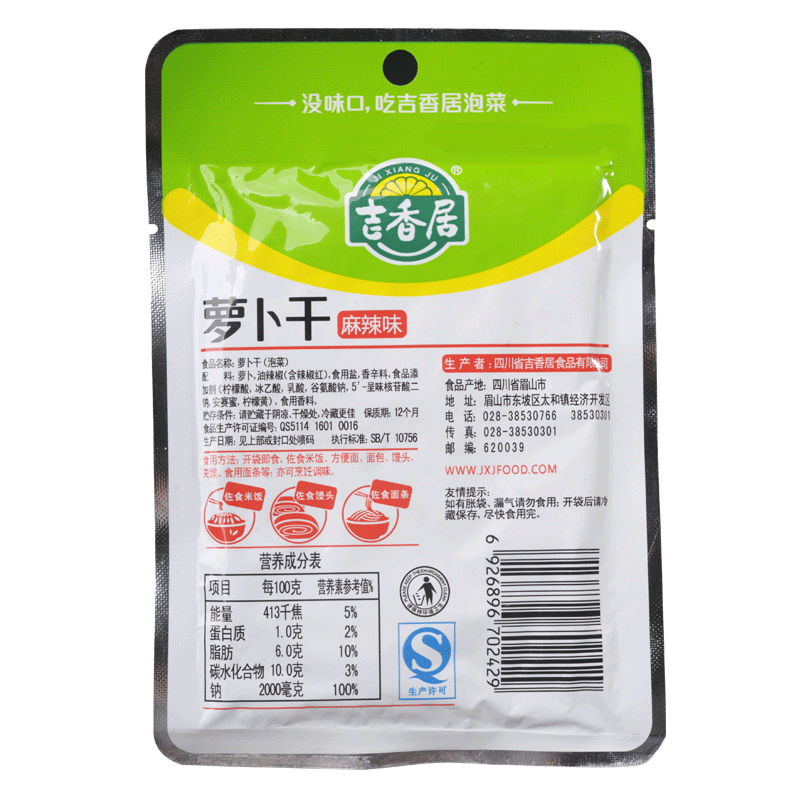 吉香居麻辣味萝卜干菜脯80g 萝卜干、菜脯 |