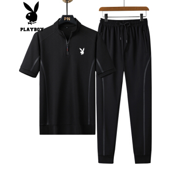 短袖套装t恤男2件套2020夏季新品短袖立领休闲T恤九分裤衫透气上衣短运动 ATD2868黑色 |