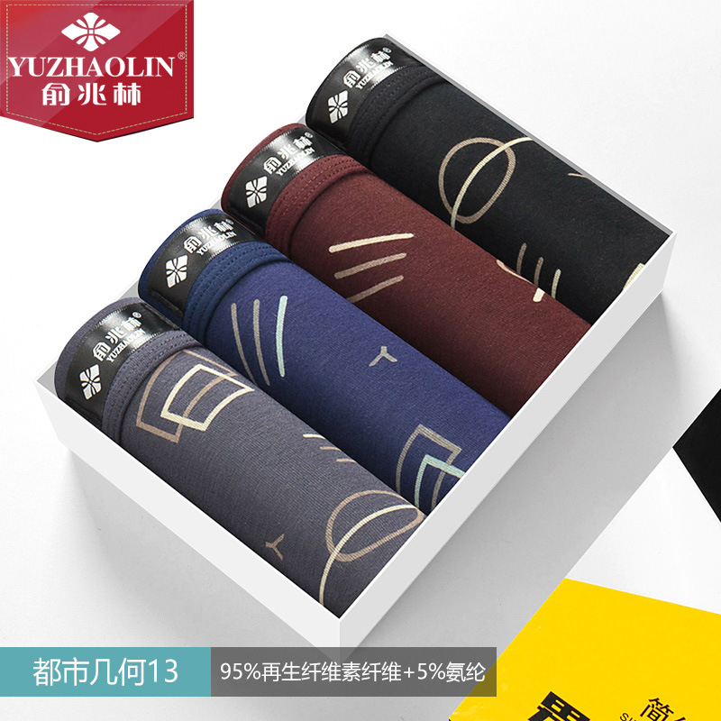 俞兆林条盒装莫代尔男士内裤品质平角裤U凸设计舒适弹力透气裤头 |
