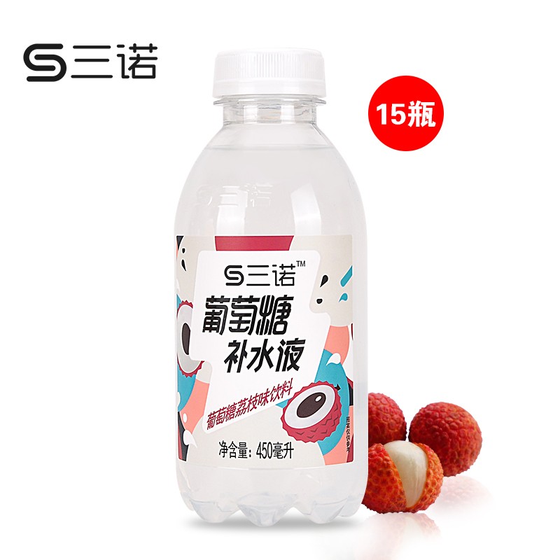 三诺荔枝味葡萄糖补水液运动功能网红饮料补充能量450ml*15瓶 |