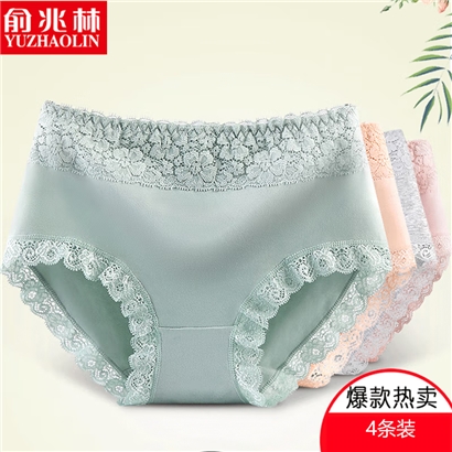 俞兆林(YUZHAOLIN)4条装内裤女纯棉裆收腹大码中腰蕾丝少女无痕透气三角裤头 |