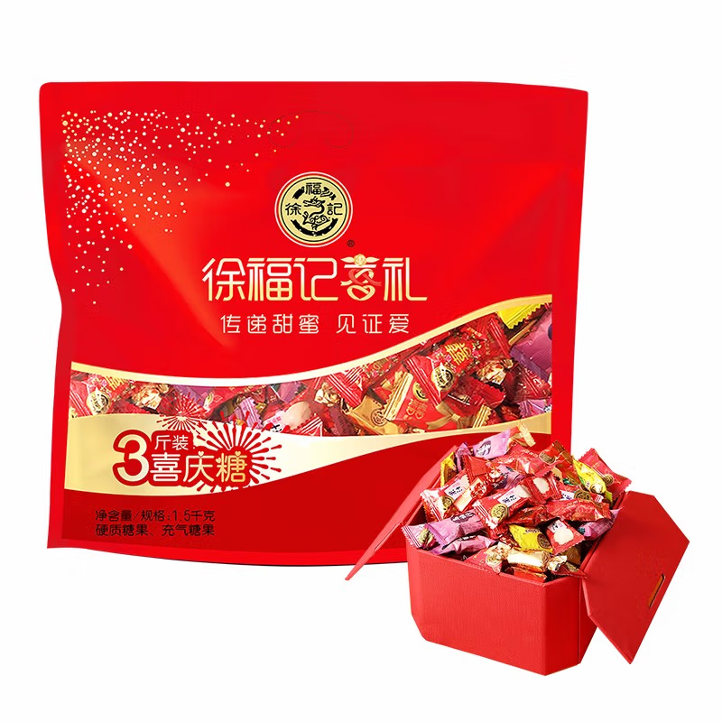 徐福记三斤装喜糖喜庆糖1500g(约300颗)春节食品结婚礼糖果什锦混合 大礼包 (新老包装随机发) |