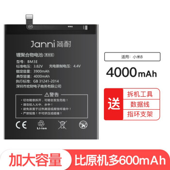 【超大容量】简耐 小米8电池 mi8/米八手机电池4000毫安扩容大容量魔改更换内置电板BM3E 【小米8电池】高容量4000mAh |