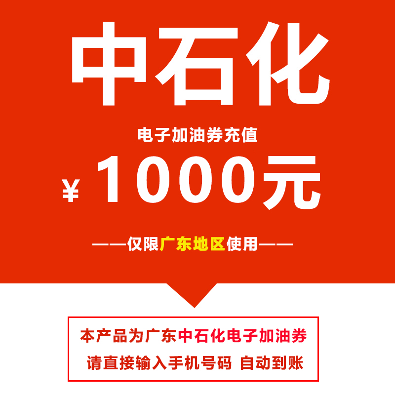 中石化电子加油券1000元 广东地区使用 自动充值 30分钟内到账 |
