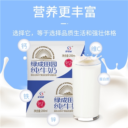 金绿成新疆田园纯牛奶200ml*20袋/箱 |