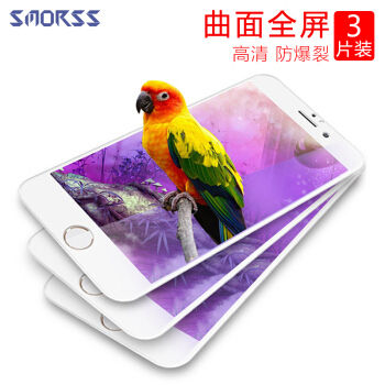 【三片装-3D抗蓝光全屏】Smorss 苹果7Plus钢化膜 iPhone7Plus钢化膜 全屏覆盖保护膜 高清贴膜 白色 |