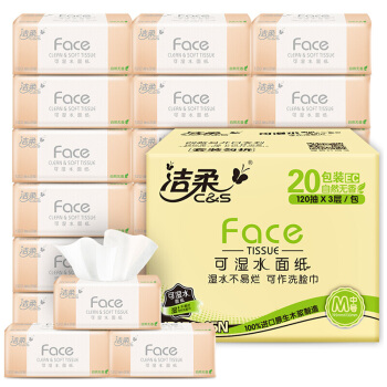 洁柔(C&S)抽纸 粉Face 柔韧3层120抽面巾纸*20包 无香(M号纸巾 面子系列可湿水 婴儿纸)整箱销售 小包纸巾 |