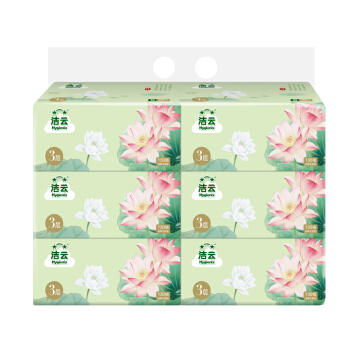 洁云 抽纸 福瑞国色荷花系列3层130抽软抽面巾纸 6包装 小规格(新老包装交替发货) |