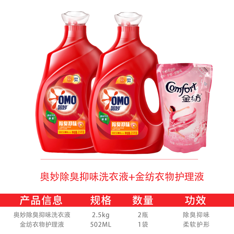 奥妙除臭抑味洗衣液2.5kg*2+金纺502ml组合 |